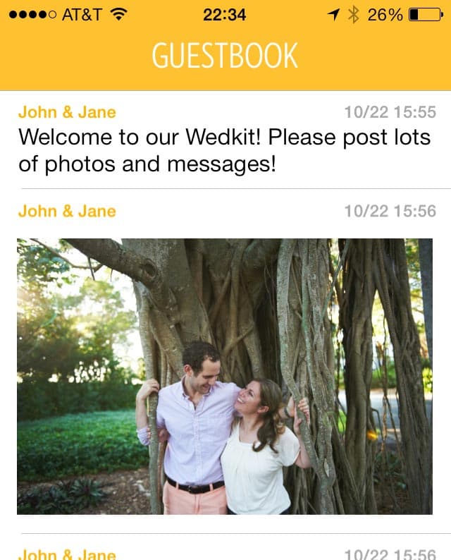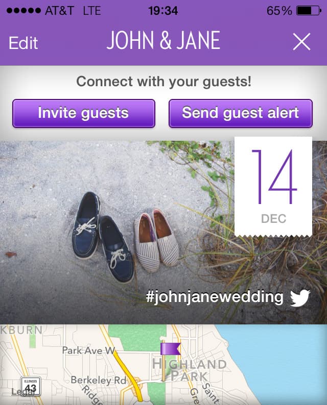 choose your wedding color, create events and setup your registry. The more specific you are, the more helpful your app will be for your guests.